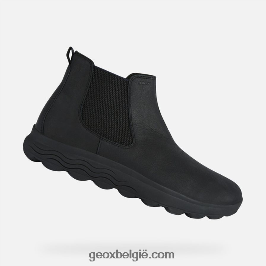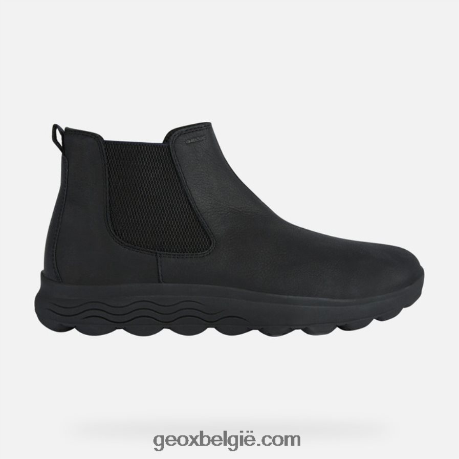innovatieve ultra-ademende enkellaars voor heren die onovertroffen comfort levert. weergegeven in gewaxt zwart leer, spherica zal alle aandacht trekken vanwege zijn stijlvolle esthetiek, verankerd in een hi-tech ontwerp en uitstekende demping. ontworpen om stedelijke outfits aan te vullen, zal het modieuze flair en een gevoel van welzijn toevoegen aan elke look.
