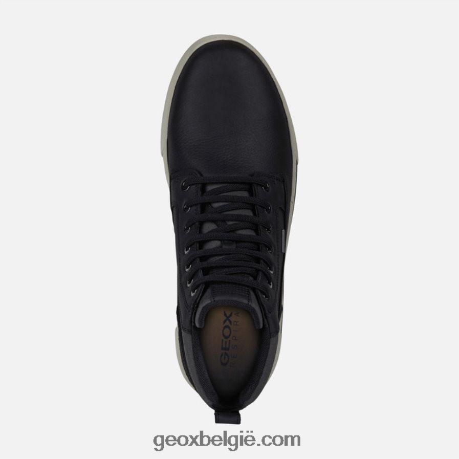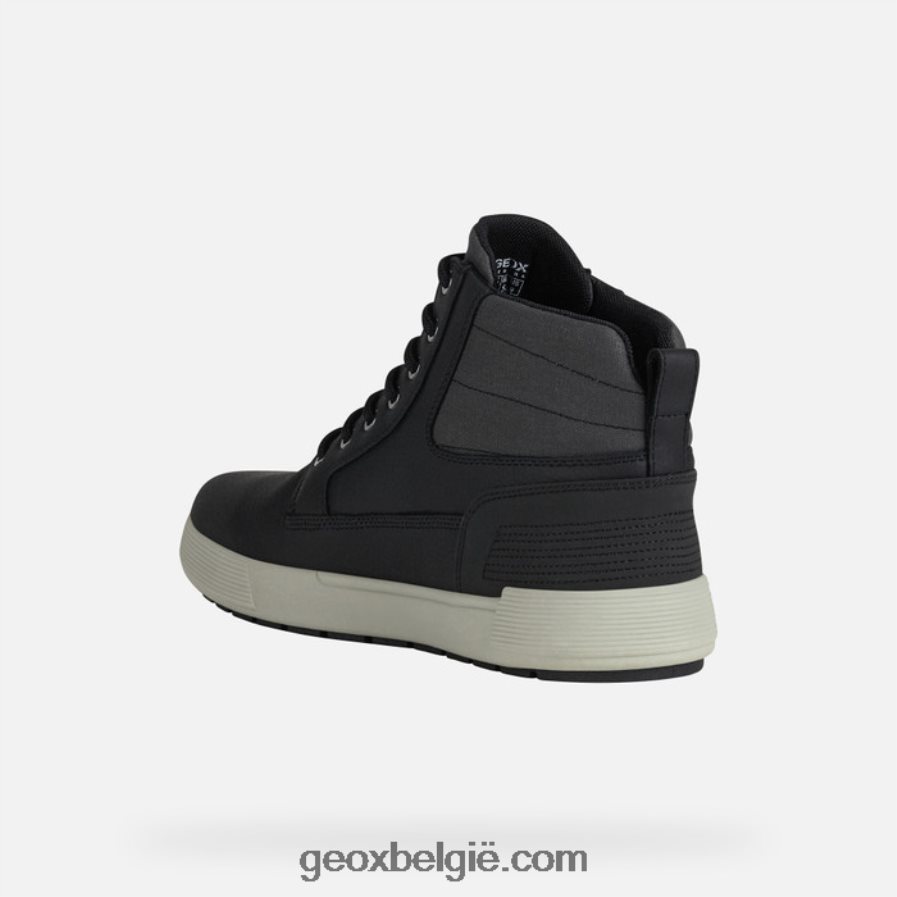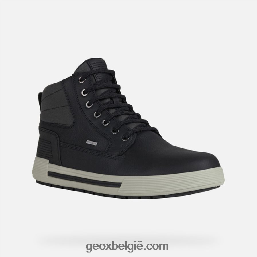 enkellaars in basketbalstijl voor heren met een waterdicht, ademend ontwerp. een eigentijdse draai aan een basketbalsneaker, tonale abx geeft elke casual outfit direct energie. perfect voor regenachtige dagen en vrijetijdsactiviteiten, deze veelzijdige enkellaars rust op een contrasterende ademende buitenzool en heeft een zwart bovenwerk gemaakt van curried getrommeld leer en volledig waterdicht nylon.