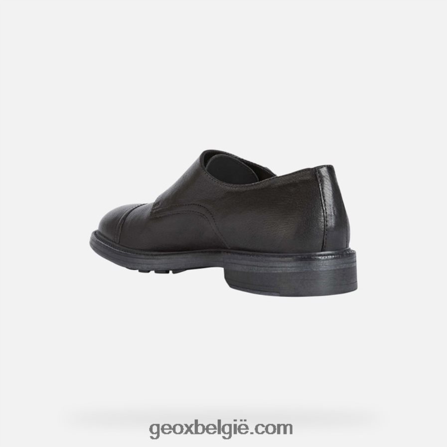 herenschoen met dubbele monniksband, een formele verbuiging en onovertroffen niveaus van comfort. Deze modern ogende versie van aurelio is gemaakt van soepel zwart nappa en heeft een authentieke uitstraling en een onberispelijke esthetiek met een slanke veterloze sluiting. met een structuur die een geweldig dempend effect biedt, past het perfect bij een kantoorlook.