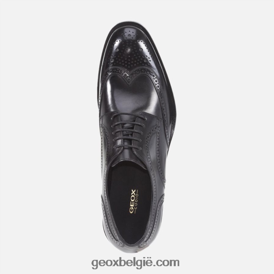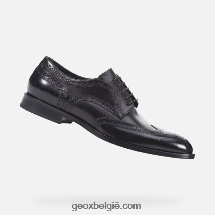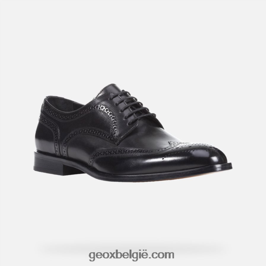 formeel ogende ademende herenschoen verbeterd met geox-cuoio-technologie. De Saymore-schoen voor heren is gemaakt van zwart leer van topkwaliteit afkomstig van Italiaanse leerlooierijen en heeft een formele verbuiging en is voorzien van een vleugeltip en verfijnde brogue-perforaties. elegant en verfijnd, het is de ultieme oplossing voor zakelijke kleding en speciale gelegenheden, met vakmanschap en met de hand afgewerkte details, terwijl het een uitstekend comfortniveau biedt.de bescherming en het comfort die worden geboden door het gepatenteerde rubber van geox zool zijn nu ook beschikbaar voor liefhebbers van leren schoenen. een speciaal membraan voegt waterbestendigheid toe aan het natuurlijke ademende vermogen van het leer, waardoor je voet de hele dag comfortabel en droog blijft. rubberen inzetstukken combineren het praktische van hun antislipeigenschappen met de onmiskenbare elegantie van leren schoenen.
