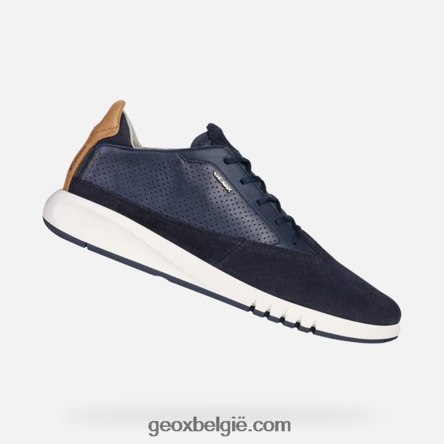 ultra-ademende en ultra-comfortabele herensneaker - een perfecte combinatie van technologie en stijl. geox's aerantis is een revolutionaire herensneaker met een iconisch en modern design. met een bovenwerk van zacht suède en leer in marineblauw met decoratieve perforaties aan de zijkant en een lichtbruine hielkap, pronkt het met een innovatieve structuur en veelzijdige esthetiek, waardoor het de perfecte aanvulling is op elke casual outfit, zowel voor geklede vrijdag of vrije dagen. met elastische vetersluiting en een onderscheidend ontwerp, is het niet alleen zacht passend, past het zich aan de voet aan, maar is het ook gemakkelijk aan te trekken en bevorderlijk voor een correct looppatroon.aerantis is de essentie van technologie en beschikt over geavanceerde oplossingen die de schoen laten ademen voor een geweldig gevoel van welzijn. het baanbrekende ventilatiesysteem werkt net als een long die, aangedreven door beweging, de interne luchtcirculatie verhoogt en het ademend vermogen rondom de voet verbetert.het werkt in combinatie met het interne ademhalingssysteem, een speciale binnenvoering die het ademend vermogen en de warmteverspreiding optimaliseert, en het net-ademhalingssysteem, dat zorgt voor een uitwisseling van lucht van buitenaf dankzij het brede geperforeerde en ademende oppervlak van de zool.