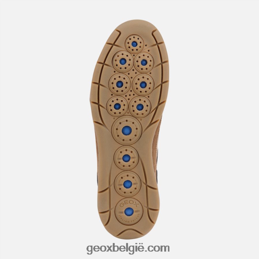 omhoogper: 43% rundersuèdeleer-21% rundernubukleer-23% textiel geweven katoen-13% rundervolnerf leervoering: 63% textiel gebreid polyester-37% synthetisch microfiberbuitenzool : 90% rubber-10% cmeva binnenzool: 100% leer runder volnerf