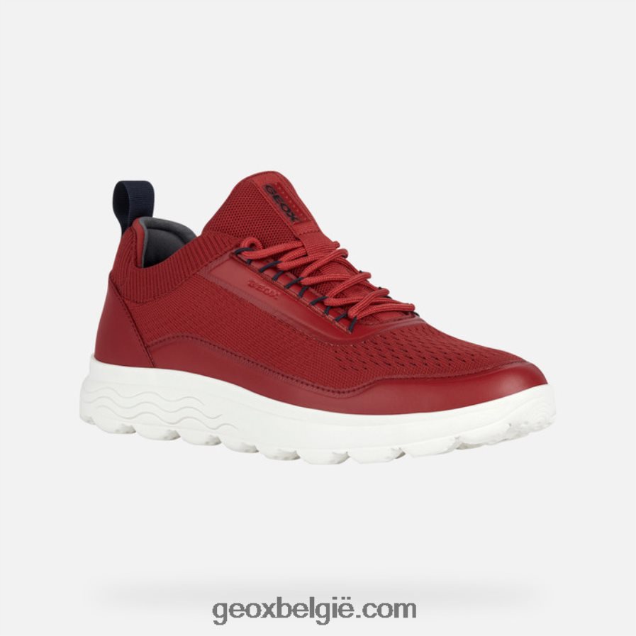 iconische laag uitgesneden herensneaker voor heren die het grootste comfort en uitstekend ademend vermogen biedt. deze levendige versie heeft een bovenwerk van een stof met gebreid effect in een dieprood palet dat zijn urban panache versterkt. rustend op een ultra-dempende buitenzool, spherica houdt je de hele dag lichtvoetig en is een perfecte partner op hectische dagen.