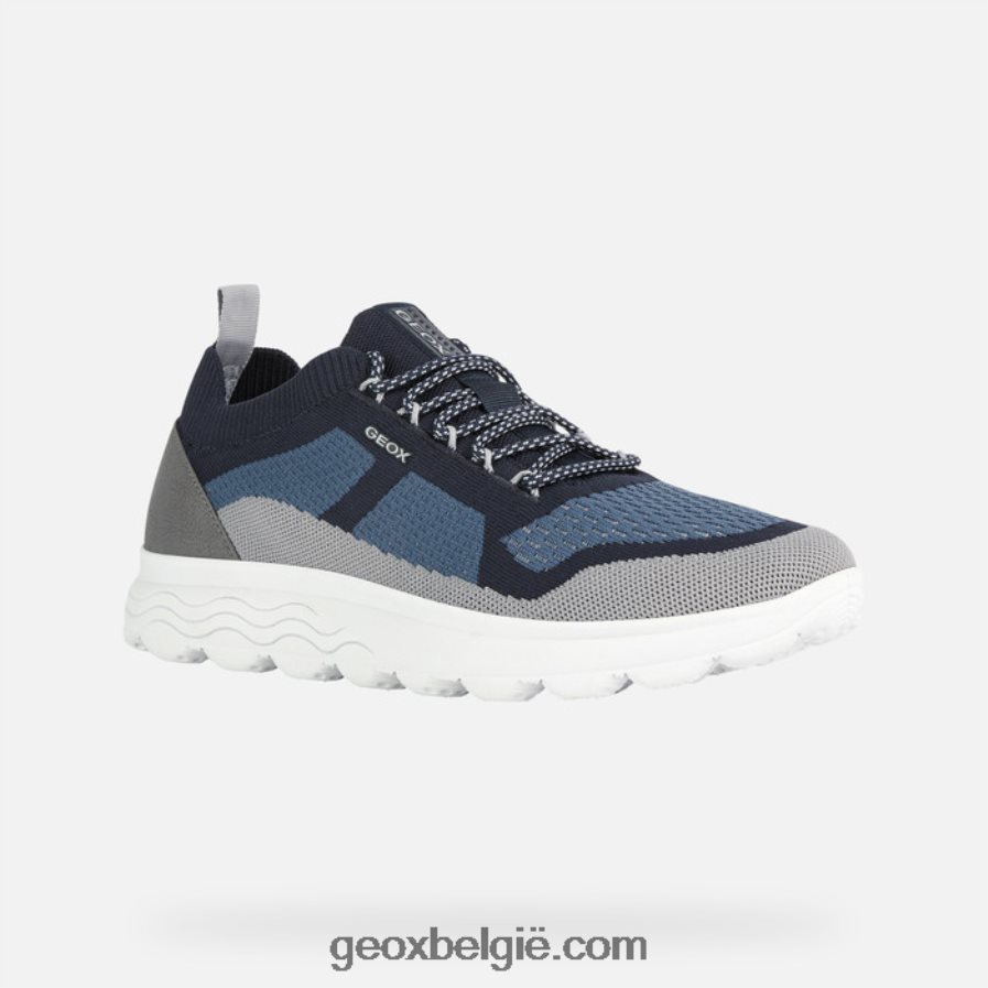 herensneakers, een mix van iconische eigentijdse stijl en totaal comfort. sferica is de sneaker met sportieve ondertoon, perfect om elke dag te dragen met casual outfits voor het stadsleven en vrije tijd. het komt in een bijpassend geometrisch ontwerp in opvallend marineblauw en grijs en is gemaakt van een gebreide stof. het technologische ontwerp verbergt ongekend gedempt comfort, voor totaal welzijn in elke situatie.