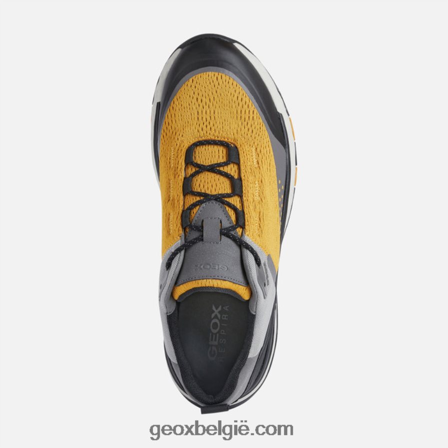 comfortabele lichtgewicht herensneakers met een urban uitstraling gecombineerd met een outdoorattitude. met een trailrunning schoenontwerp en een uitgesproken grootstedelijke stijl, zijn sterrato sneakers ontworpen om totaal comfort te bieden voor het buitenleven in de stad. lichtgewicht, ultra-ademend en bestudeerd tot in elk detail om stabiliteit en comfort te bieden, ze zijn gemaakt van mesh en een bedrukt materiaal met nubuck-effect in oker en lichtgrijs, voor een dynamische en veelzijdige casual esthetiek.