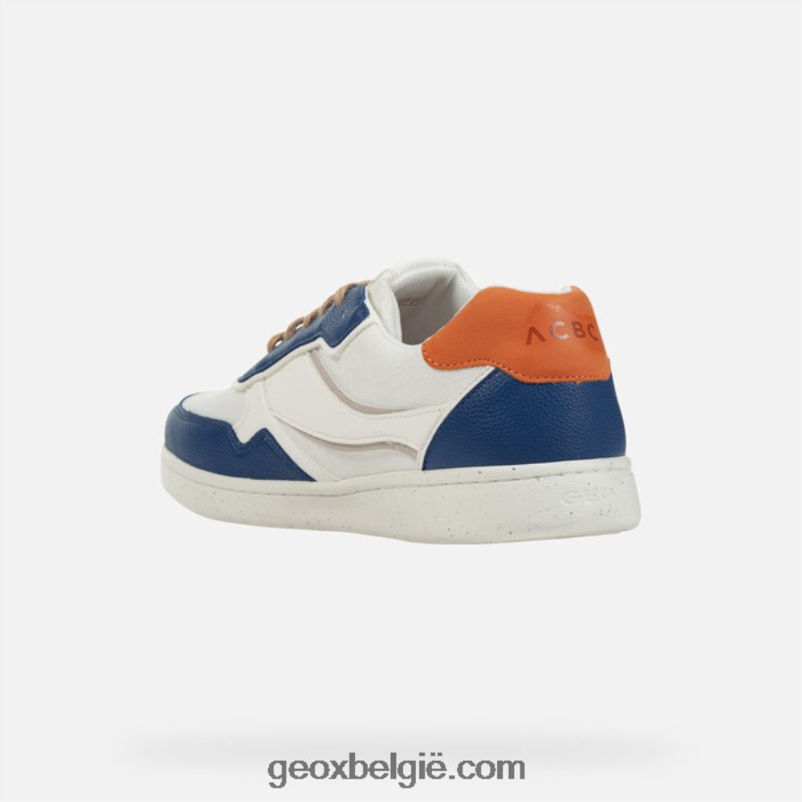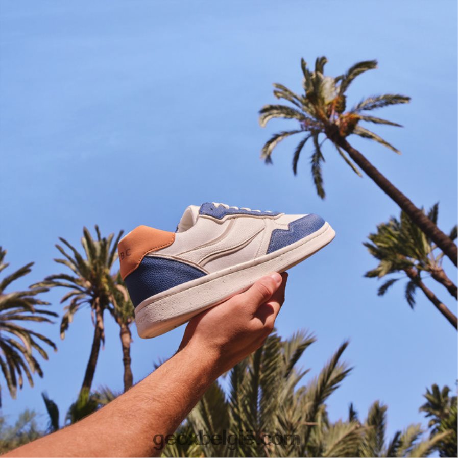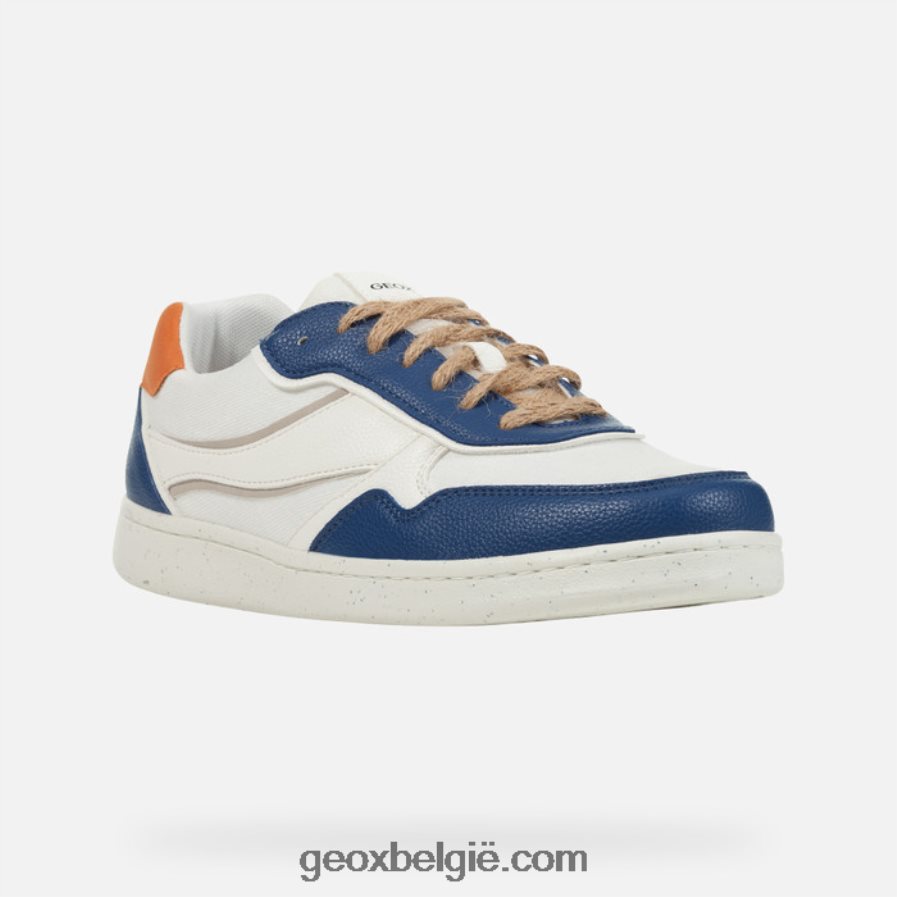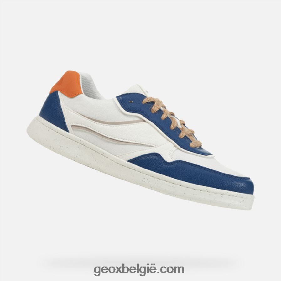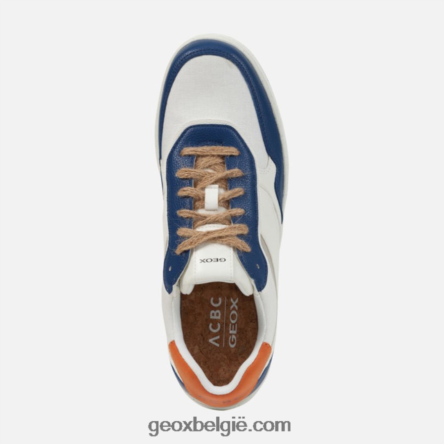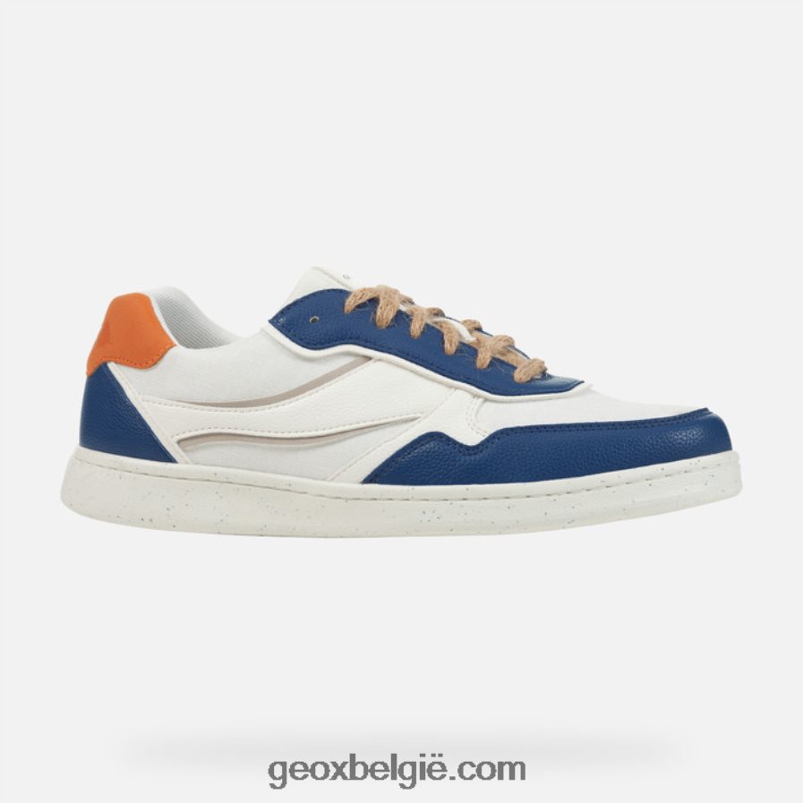 eigentijds ogende volledig duurzame laag uitgesneden sneaker voor heren ontworpen als onderdeel van de samenwerking tussen geox en acbc, een toonaangevend bedrijf op de groene schoenenmarkt. deze versie wordt geleverd in een denimblauwe en witte colorway met een bovenwerk van materiaal met getrommeld leereffect en canvas dat een interessant contrast creëert tussen een glanzende en matte textuur. elk onderdeel van dit comfortabele flexibele schoeisel is uitsluitend gemaakt van gerecyclede, biologische en diervrije materialen. warrens wordt geleverd met twee verschillende sets veters: één 100% recyclebaar in jutevezel en de andere in rebotilia, een materiaal afgeleid van gerecyclede petflessen.ademend vermogen div>