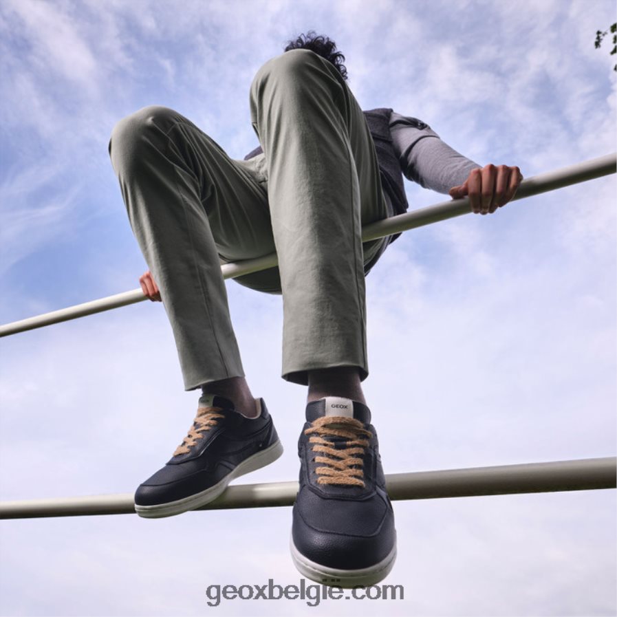 vervaardigd van gecertificeerde duurzame materialen, heeft deze laag uitgesneden herensneaker een elegante actieve esthetiek. warrens behoort tot de nieuwe capsulecollectie van geox in samenwerking met acbc, een leidende speler op de markt voor milieuvriendelijke schoenen. met contrasterende texturen en verschillende gradaties van glans, het marineblauwe bovenwerk heeft een basis in een getrommeld leer-effect materiaal onderbroken door een slinky golfdetail in een effen leer-effect materiaal langs de zijkant. comfortabel, flexibel en op een waterdichte ademende zool, deze schoen is volledig gemaakt van gerecyclede, biologische, diervrije materialen. het heeft twee verschillende soorten veters die ook milieuvriendelijk zijn - een van volledig recyclebare jutevezel en de andere van rebotilia, een materiaal afgeleid van gerecyclede petflessen.